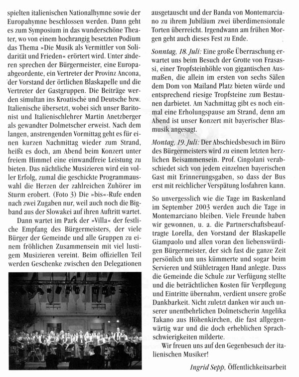 Montemarciano 2004, Gemeindeblatt, 09/2004
