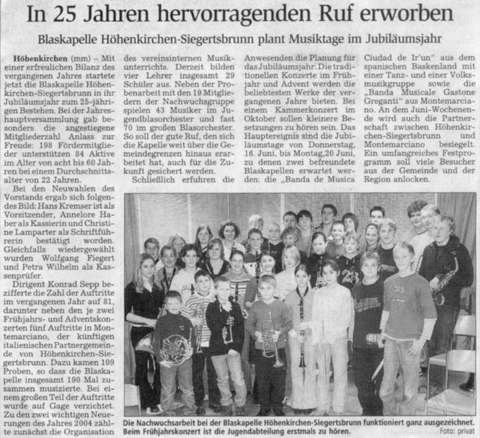 Jubiläumsjahr 2005, Münchner Merkur, 15.1.2005