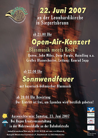 Freitag, 22. Juni 2007, an der Leonhardikirche in Siegertsbrunn ab 21.00 Uhr: Open-Air-Konzert