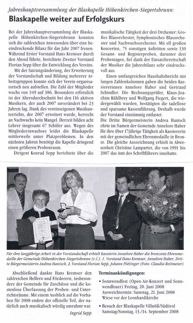 Mitgliederversammlung 2008, Gemeindeblatt, April 2008