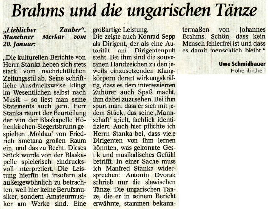 Neujahrskonzert 2009, Leserbrief, Münchner Merkur, 24.1.2009