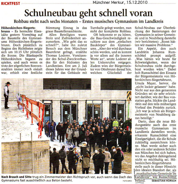 Richtfest neues Gymnasium, Münchner Merkur, 15.12.2010