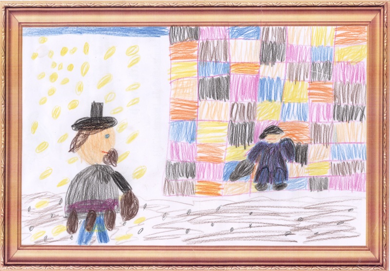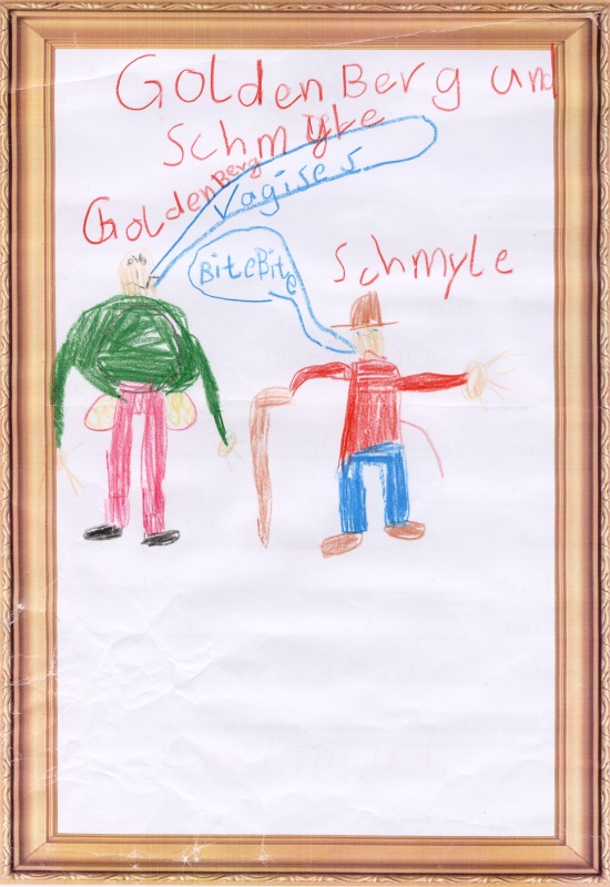 Sonderpreis: Priska, 7 Jahre, "Samuel Goldenberg und Schmuyle". Farbenfrohe Darstellung, die den Streit der beiden als Duell inszeniert.