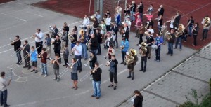 Marschierprobe im Hof der Erich-Kästner-Schule
