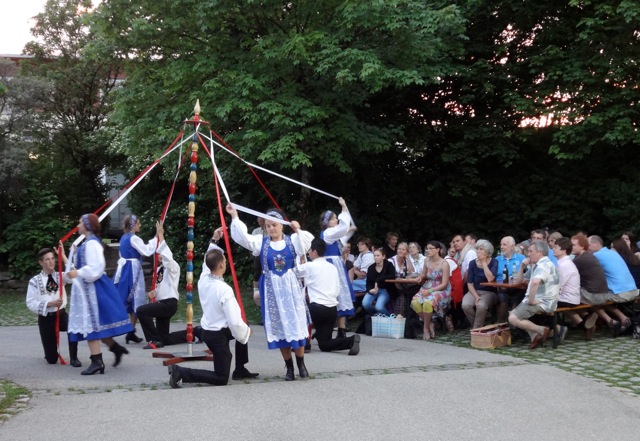 Vergnügte gemeinsame Abende mit den Gastgebern und eine Einladung zur Ottobrunner Feuerwehr gehörten zum geselligen Teil des Aufenthaltes. Unbestrittener Höhepunkt war am letzten Tag ein Gemeinschaftsabend mit den Gastgebern und einigen Musikern beim Probenraum der Blaskapelle. Natürlich ließen die Siebenbürger es sich nicht nehmen, in ihrer festlichen Tracht Tänze aus ihrer Heimat zu zeigen. Die fröhliche Stimmung vereinte schließlich alle zusammen bei bayerischen Tänzen und gipfelte in einer lustigen gemeinsamen Münchner Française.