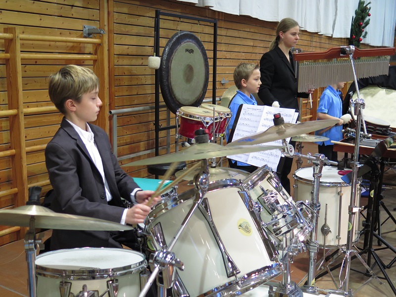 Den ersten Teil des Konzerts eröffnete das Nachwuchsblasorchester mit der den Zuschauern auch als Eurovisionsmelodie bekannten Komposition von Antoine Charpentier, einem Vorspiel zum „Te Deum“. Erste weihnachtliche Klänge ertönten bei der Fantasie über „Noël nouvelet“, einer freien Bearbeitung eines französischen Weihnachtsliedes, bevor das Jugendblasorchester auf die Bühne ging und sein musikalisches Können unter der Leitung von Sonja Weese zum Besten gab. Neben dem Finale aus dem Weihnachtsoratorium „Tollite Hostias“ von Camille Saint-Saëns wagte sich das Jugendblasorchester an eine modernere Komposition heran. Die bekannten Melodien aus dem Zeichentrickfilm „Die Schöne und das Biest“ von Alan Menken ließen den einen oder anderen Zuhörer mitsummen.