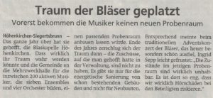 Höhenkirchen-Siegertsbrunn — Das ganze Jahr über hat sie gehofft, die Blaskapelle Höhenkirchen. Dass wirklich ihr Traum wahr werden könnte und die Gemeinde an die Mehrzweckhalle für die inzwischen 200 aktiven Musiker, die sieben Ensembles und vier Orchester bilden, einen passenden Probenraum anbauen lassen würde. Ende des Jahres zerschlug sich der Traum dann — die Zuschüsse, auf die man gehofft hatte in der Verwaltung, sind nicht zu haben. Es gibt sie nur für die energetische Sanierung von schon bestehenden Gebäuden und nicht für Neubauten. Entsprechend meinte beim traditionellen Adventskonzert der Bläser, das heuer besonders schön ausfiel, Ingrid Sepp leicht gefrustet: „Die Zustände im jetzigen Probenraum sind wirklich unhaltbar. Es ist dort so eng, dass wir wirklich Hörschäden bei den Beteiligten riskieren.“