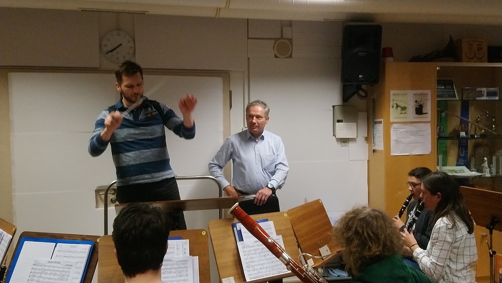 Roland Spingler, Bürgermeisterkandidat der CSU, besuchte die Probe am 8. Januar 2020 und machte sich ein Bild von der kritischen Raumsituation der Blaskapelle.