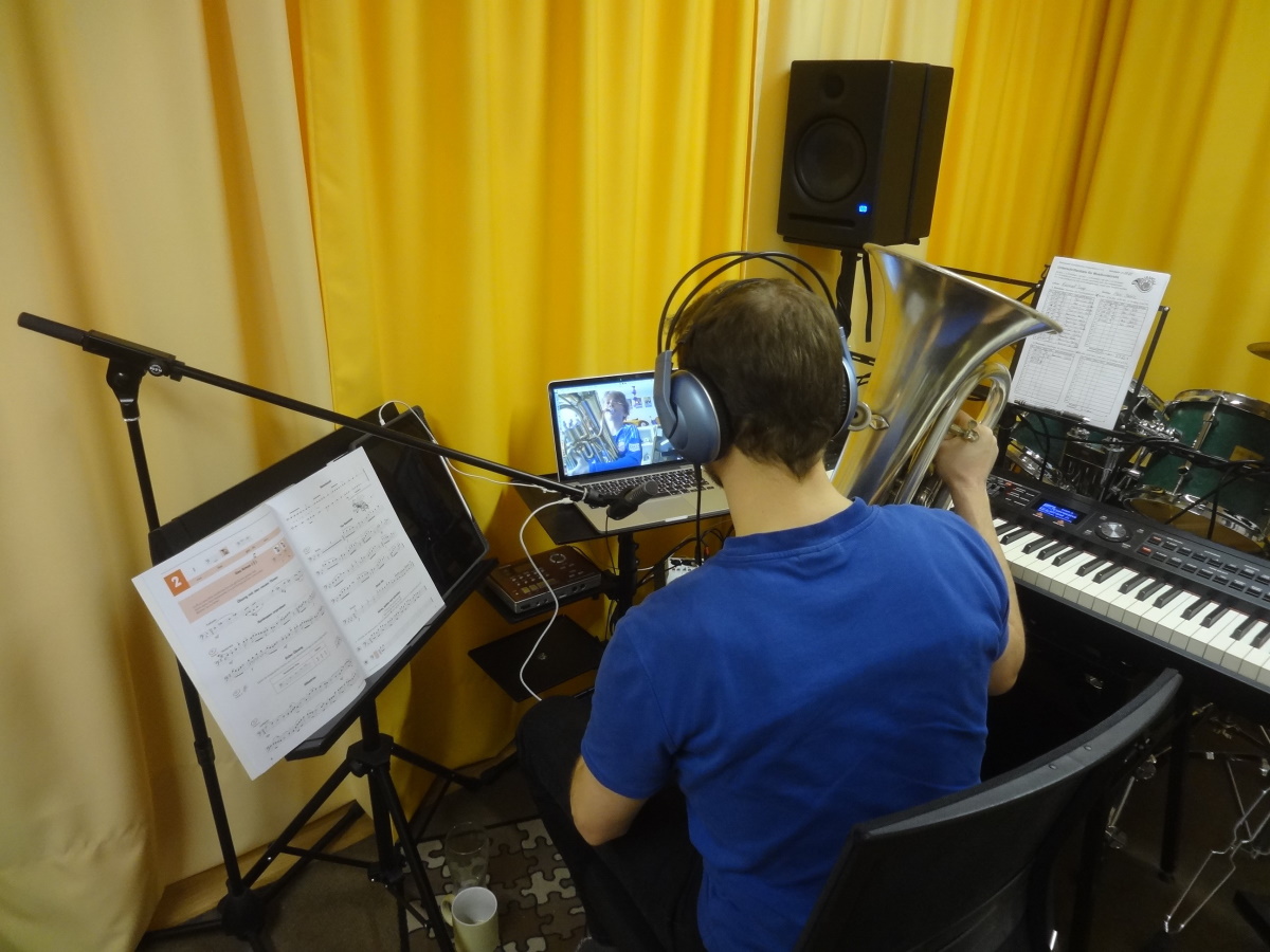 Vor besondere Herausforderungen stellte uns der Musikunterricht der Blaskapelle mit seinen rund 100 Schülern und zehn freiberuflichen Lehrkräften. Die Schließung der Unterrichtsräume in der Schule und das Kontaktverbot bedeutete das Aus für den Unterricht in seiner bisherigen Form. Für die freiberuflichen Lehrkräfte hätte der ersatzlose Ausfall einen empfindlichen Verdienstausfall bedeutet. Genauso wäre auch für die Schüler die Pause nicht gut für die musikalische Entwicklung gewesen.